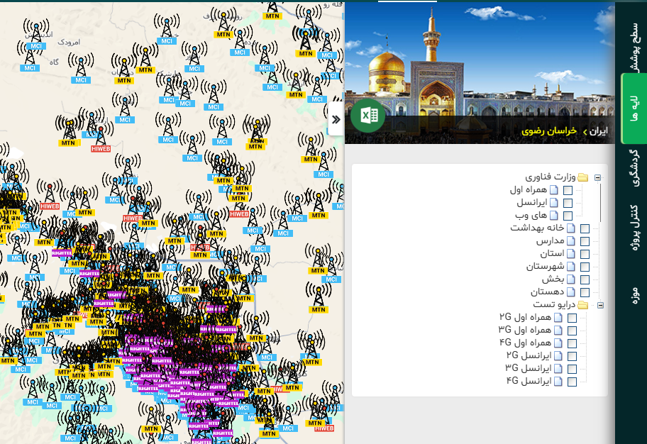• امکان نمایش آمار کلی در سطح کشور همراه باقابلیت جزئی شدن مرحله‌ای تا سطح روستا و دکل‌های مخابراتی