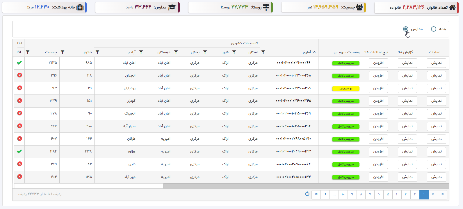 • داشبوردی برای مدیران سطح کلان کشور که در بخش‌های توسعه و عمران روستایی مدیریت می‌کنند.