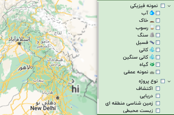 • امکان جستجوی نمونه‌های فیزیکی زمین‌شناسی بر اساس نقشه و ترسیم چندضلعی روی نقشه