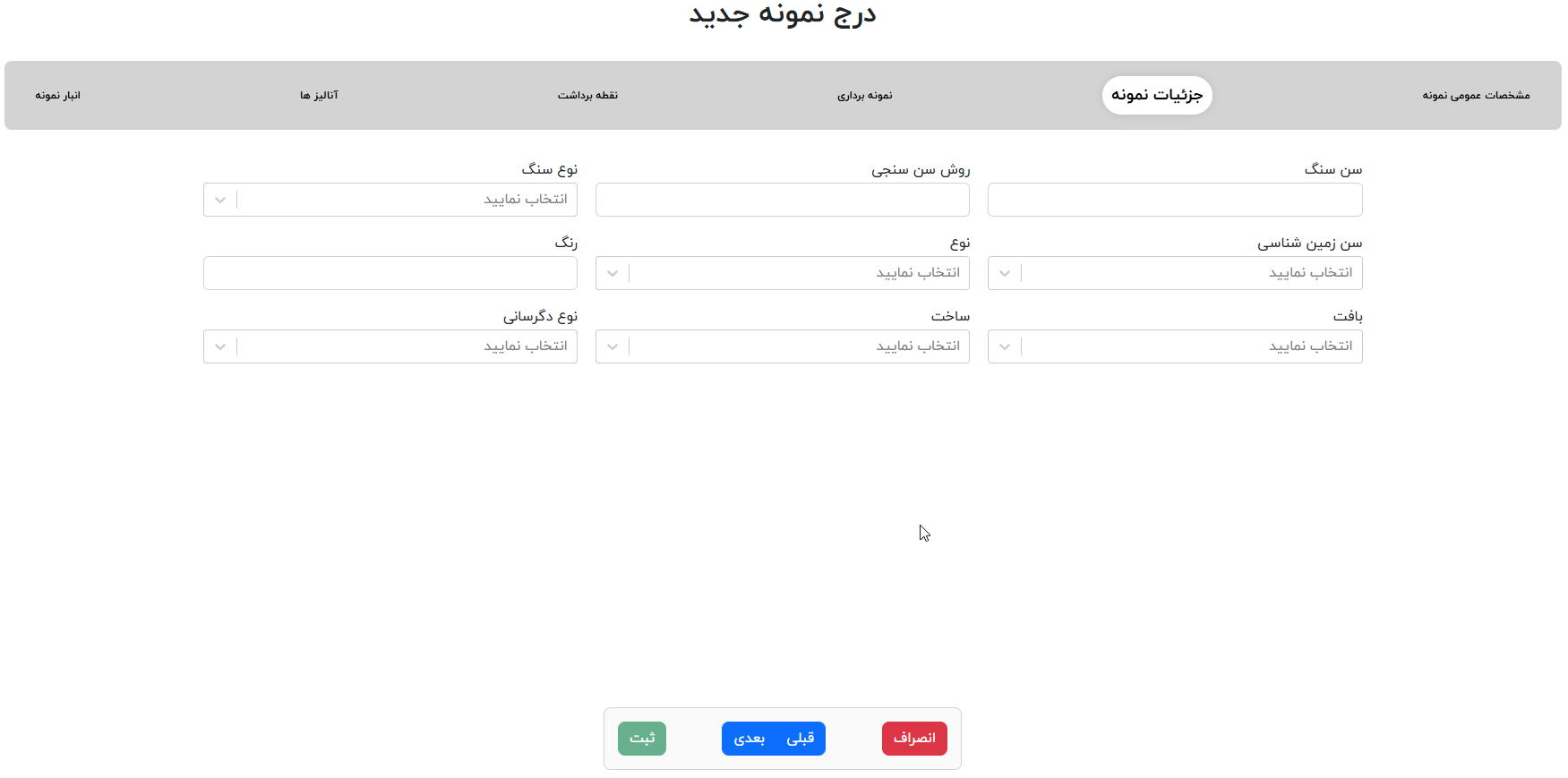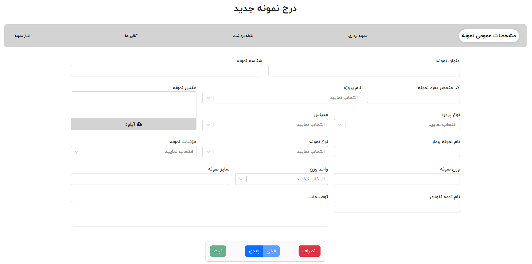 • امکان ثبت آنالیزهای نمونه و جستجو بر اساس آنها
